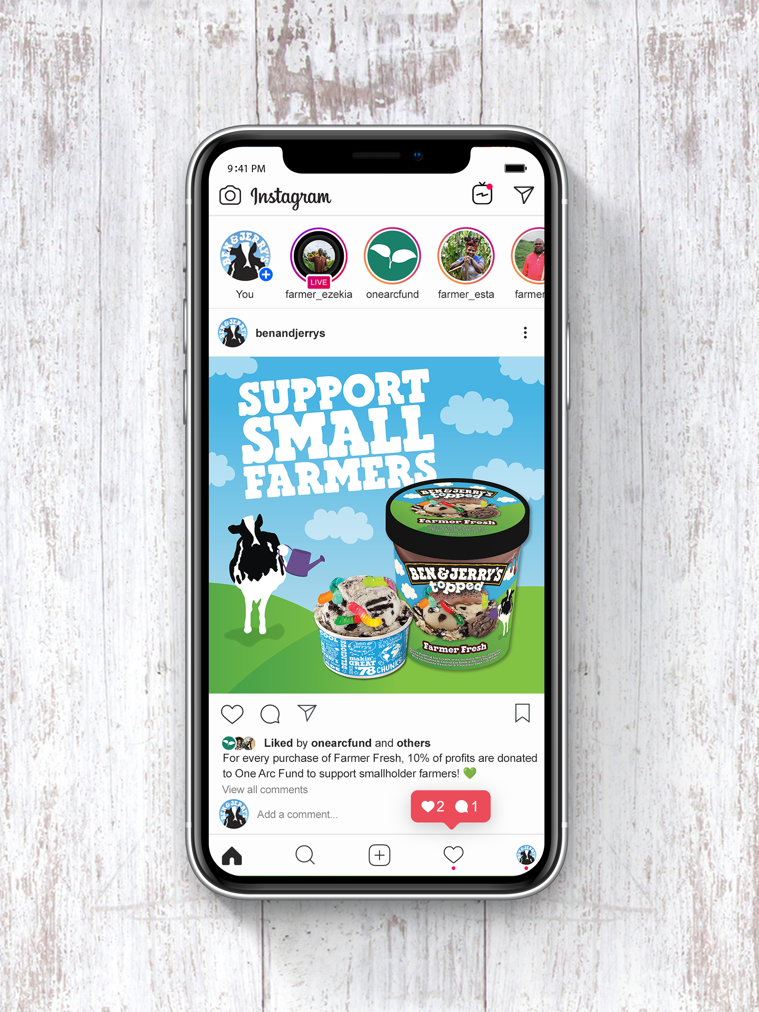 Objective: Encourage customers to purchase Farmer Fresh ice cream to help support smallholder farmers.